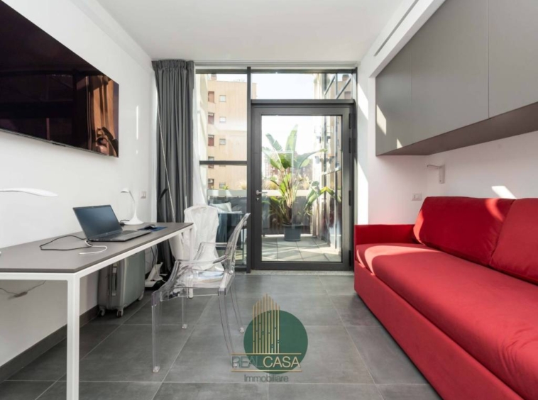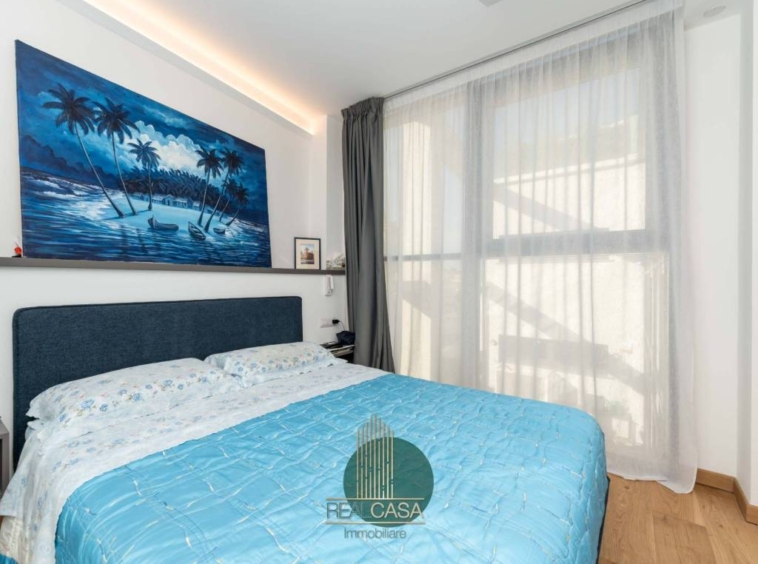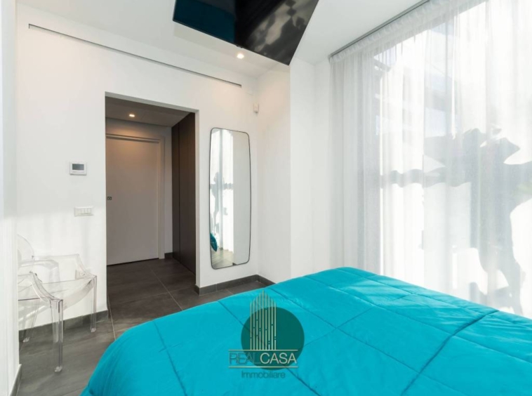 L’appartamento si presenta in perfette condizioni con finiture di pregio, armadi a muro su misura, aria condizionata e ampie vetrate fino al soffitto che donano costante luminosità all’immobile.