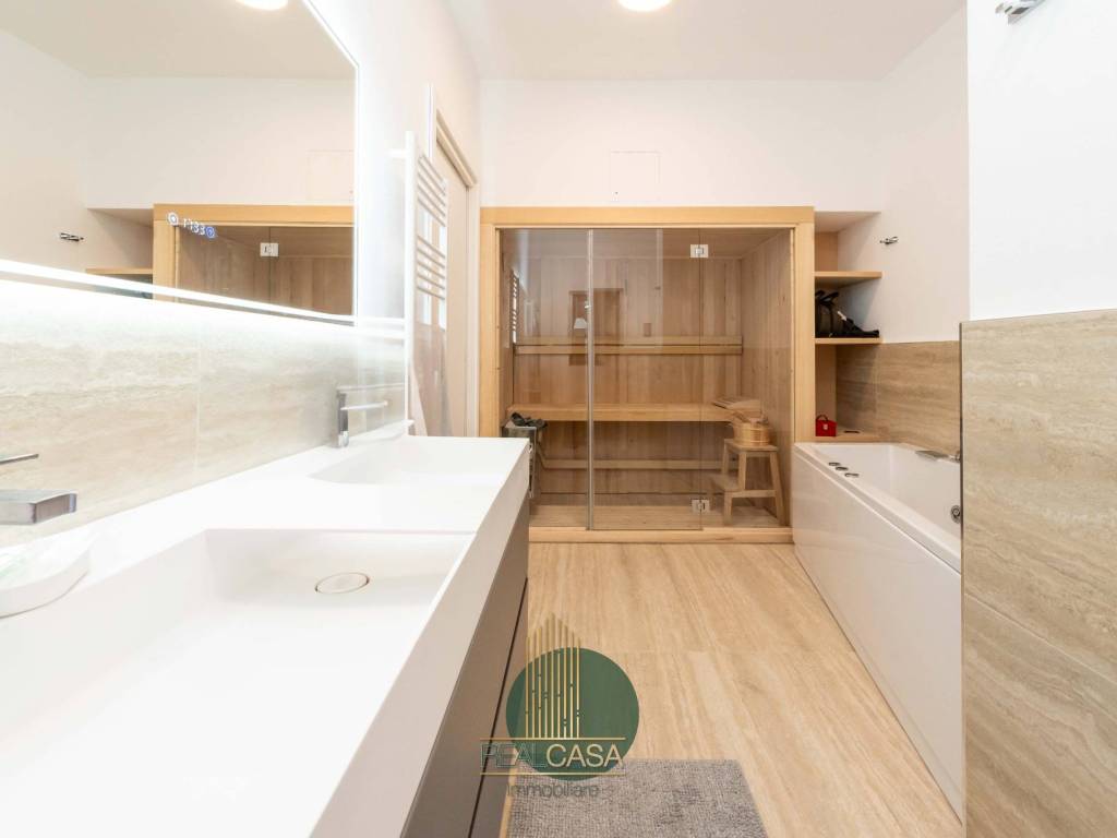 Al piano superiore, collegato da una scala, interna troviamo un piccolo soggiorno con cucina, due spaziose camere da letto di cui una cabina armadio e un bagno con vasca idromassaggio con bagno turco e sauna.