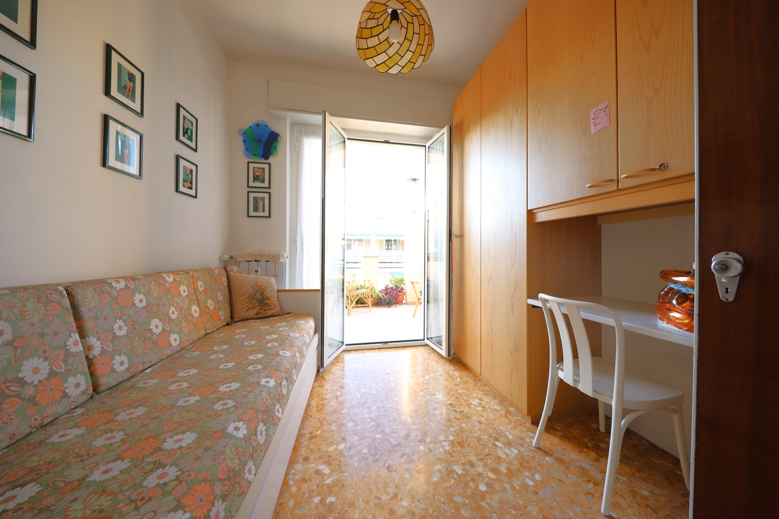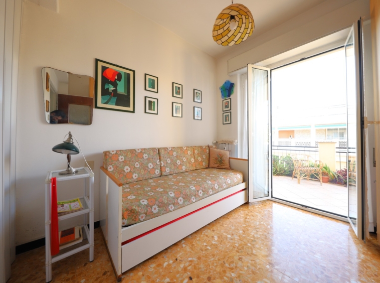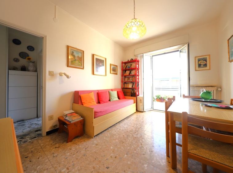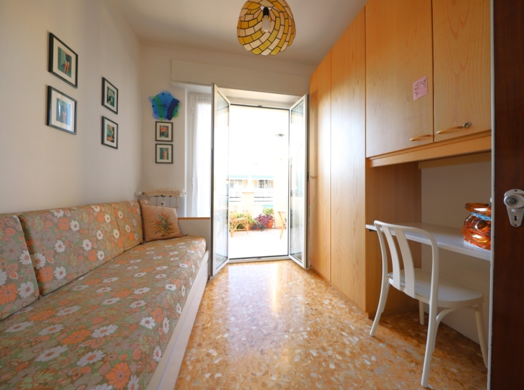 L’appartamento è così disposto: ingresso su disimpegno, soggiorno, cucina abitabile, bagno finestrato, cameretta e terrazzo.