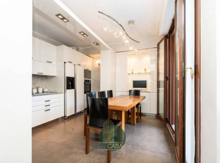 L’appartamento si distingue per l’ampiezza degli ambienti e la qualità delle finiture, curate nei minimi dettagli da un architetto. L’ingresso conduce a un grande salone doppio, perfettamente collegato alla cucina abitabile, realizzata su misura con materiali di pregio e pensata per chi ama coniugare design e funzionalità. Completano la zona giorno un pratico locale lavanderia, ripostigli a muro e un magnifico terrazzo vivibile, ideale per momenti di relax all’aperto.