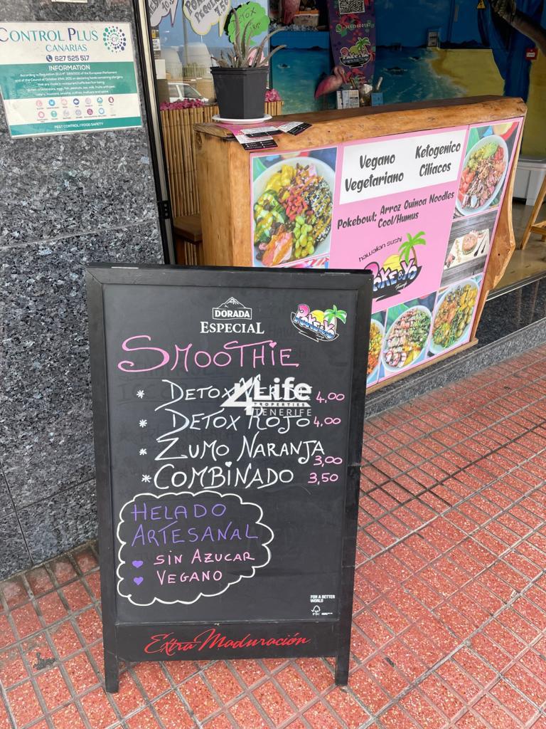 Real Casa immobiliare propone in vendità cessione di una nota attività di takeaway hawaiano nel centro di LOS CRISTIANOS TENERIFE. Il negozio è aperto da 2 anni e ha il marchio registrato, è una procedura che avere più punti vendita può portare ad un franchising. Si trova in una zona vicino al centro di Los Cristianos, dove sono presenti diversi punti di ritrovo strategici sia di giorno che di notte data la vicinanza alla spiaggia. Il locale attualmente lavora 6 giorni a settimana con orario dalle 12 alle 19, ha un discreto punteggio sui portali sia per il servizio che per la qualità del cibo. I prodotti realizzati sono: poke bowl (sushi hawaiano), frullati, noodle box…, dispone di licenza da asporto e bar caffetteria. Lo spazio a disposizione del locale è così distribuito: nella parte inferiore del locale è presente un laboratorio attrezzato con un piccolo magazzino e un bagno a disposizione del personale; Nella parte superiore con accesso al pubblico abbiamo un ampio bancone del freddo dove vengono conservati e sostituiti gli alimenti offerti, una zona per la manipolazione degli alimenti e un’altra dedicata alla vendita ed infine una zona per il consumo. Il posto ha un arredamento molto bello e originale, senza eguali nel sud di Tenerife. Attività a 100 metri da una delle spiagge più visitate e turistiche dell’isola ( playa las vistas e los cristiano). Il negozio si trova all’interno di un hotel. Trasferimento: € 64.000 Canone di locazione: € 500/mese più ritenute.