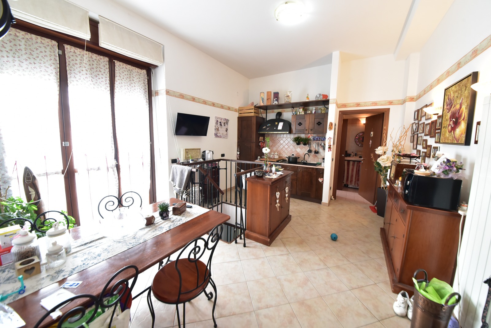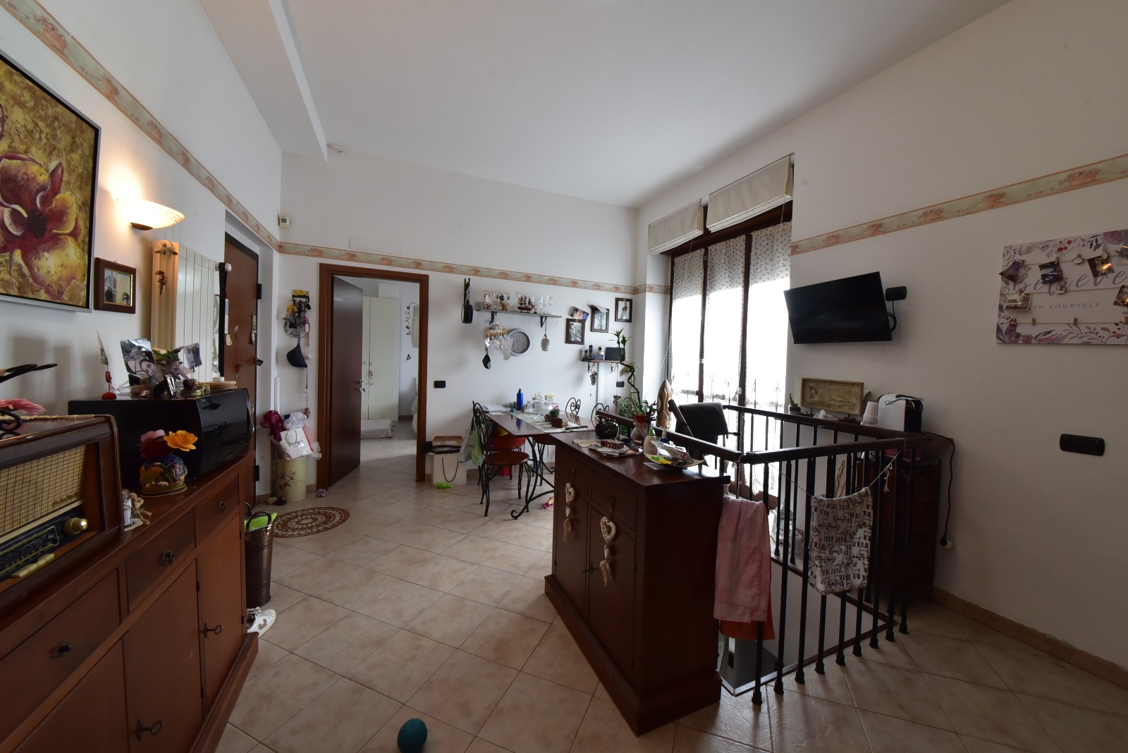 Dal cortile condominiale, accediamo all’ingresso della palazzina dove, all’ingresso dell’appartamento ci accoglie la zona giorno, composta da soggiorno con angolo cottura.