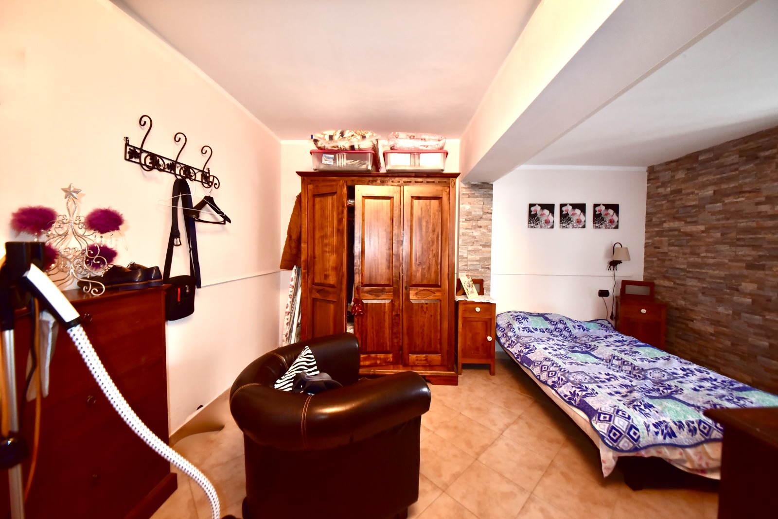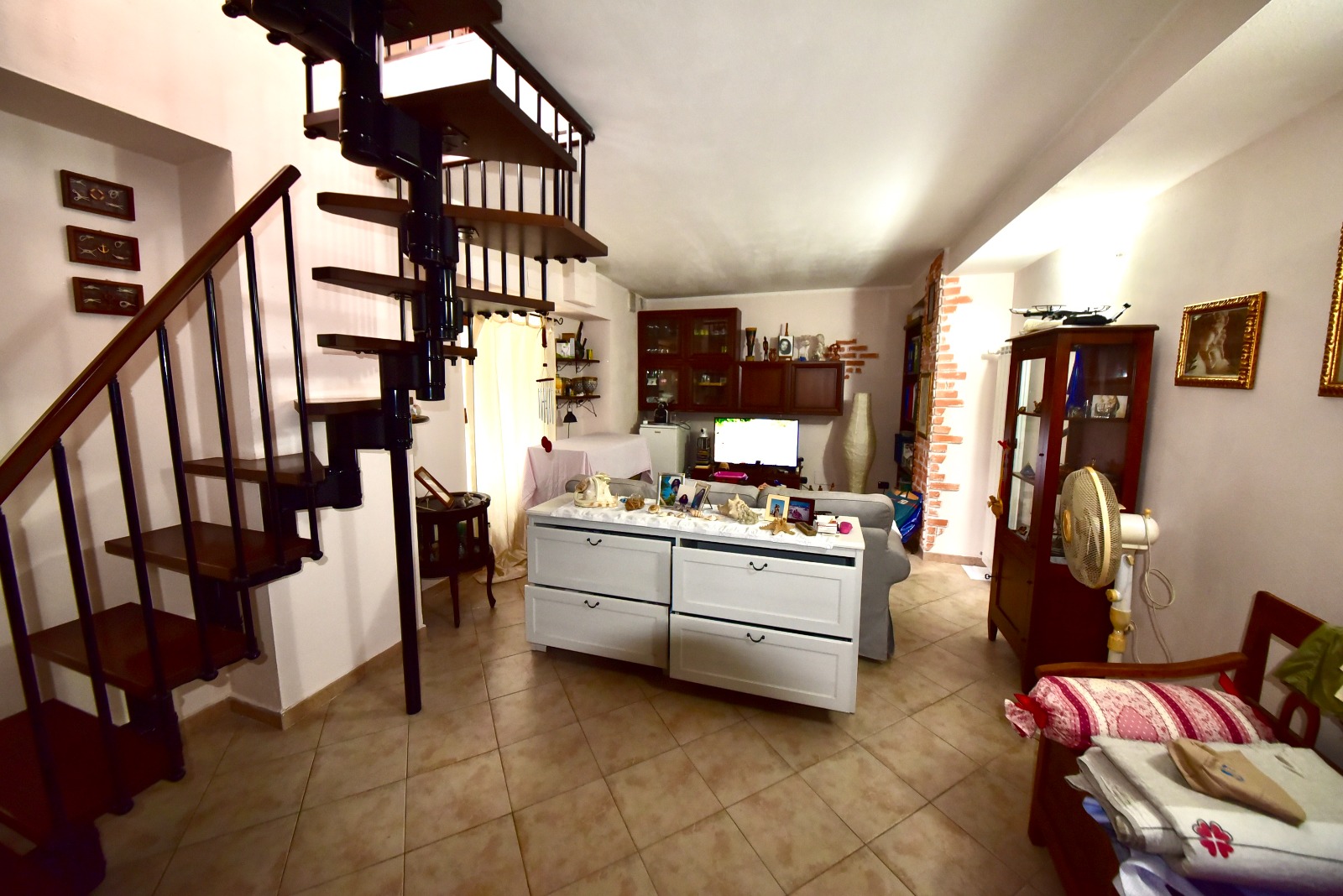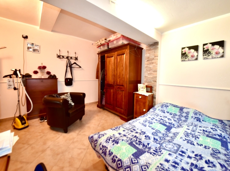 Dalla zona giorno, la scala interna conduce al piano seminterrato, dove troviamo un’ampia taverna adibita a zona giorno, provvista di attacchi e scarichi per un’eventuale seconda cucina o un secondo servizio ed un ulteriore locale adibito a camera da letto.