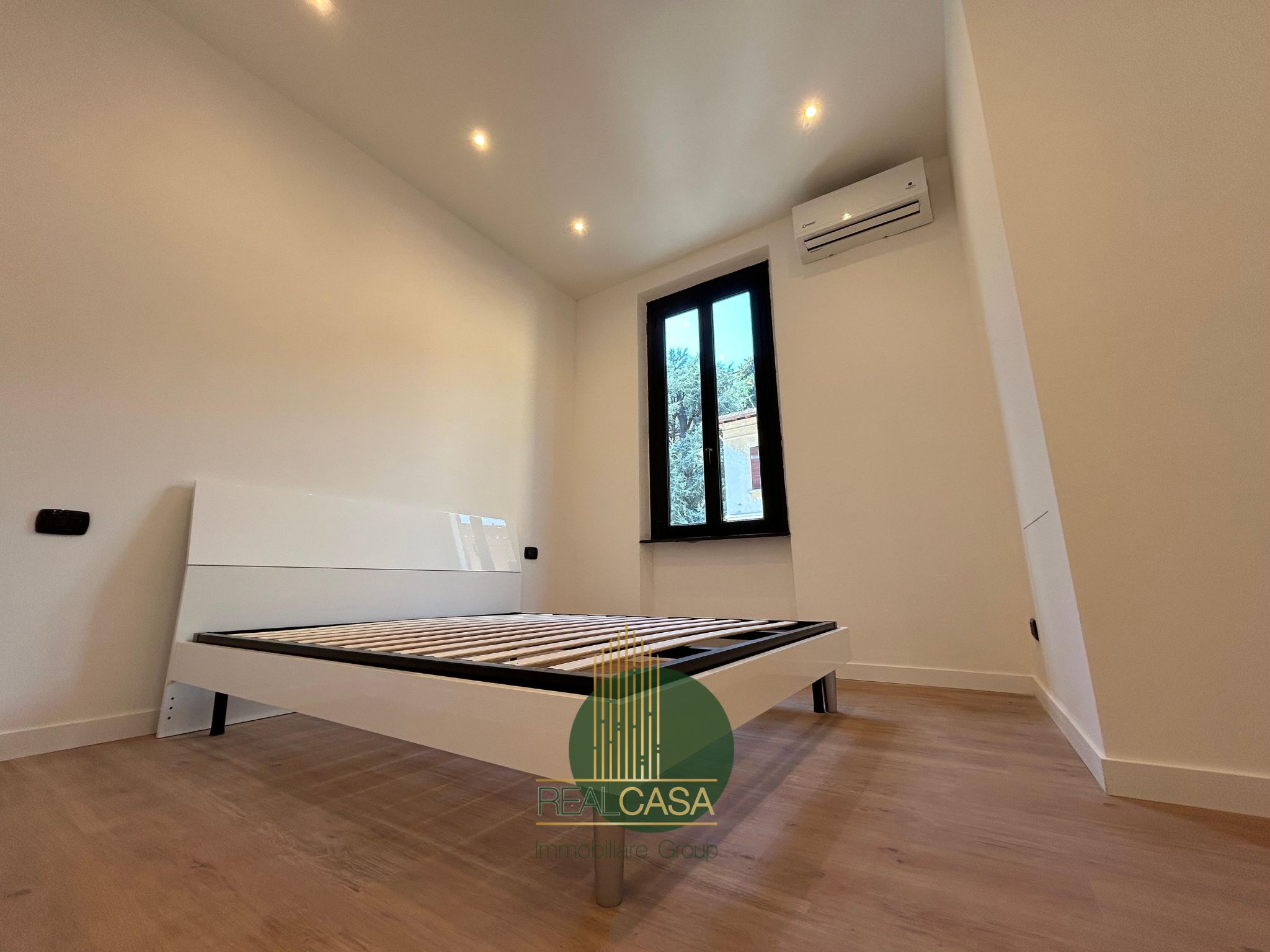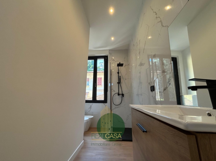 l’appartamento è finemente rifinito con pavimentazione in SPC effetto legno in tutta casa, serramenti in alluminio doppio vetro e condizionatori INVERTER caldo/freddo in zona notte e zona giorno