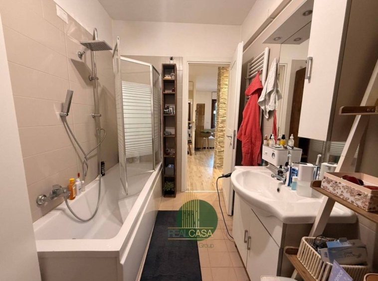 Il riscaldamento è gestito da una moderna pompa di calore e l’acqua calda da un boiler elettrico. Questo significa zero spese di gas!