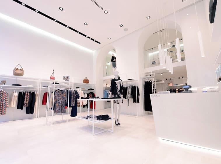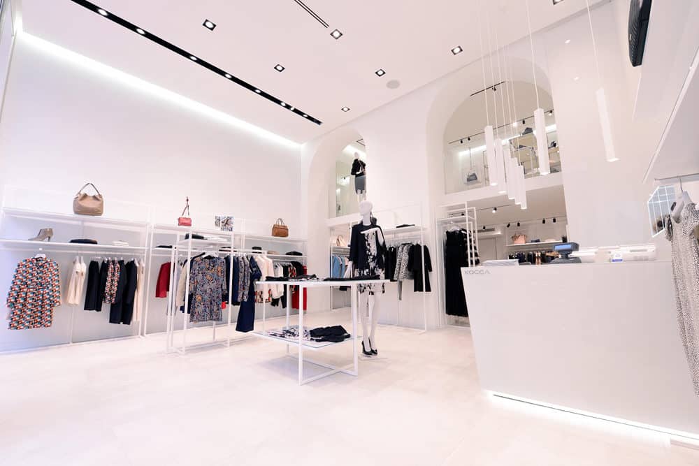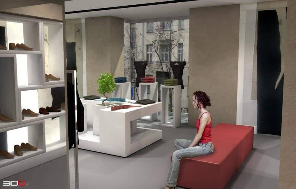 Il locale è finito con estremo gusto e si divide in due zone: al piano terra troviamo l’area espositiva con area vendita, a completare il piano il servizio ed il camerino, attraverso l’ampia scalinata accediamo al soppalco anch’esso adibito ad area vendita.