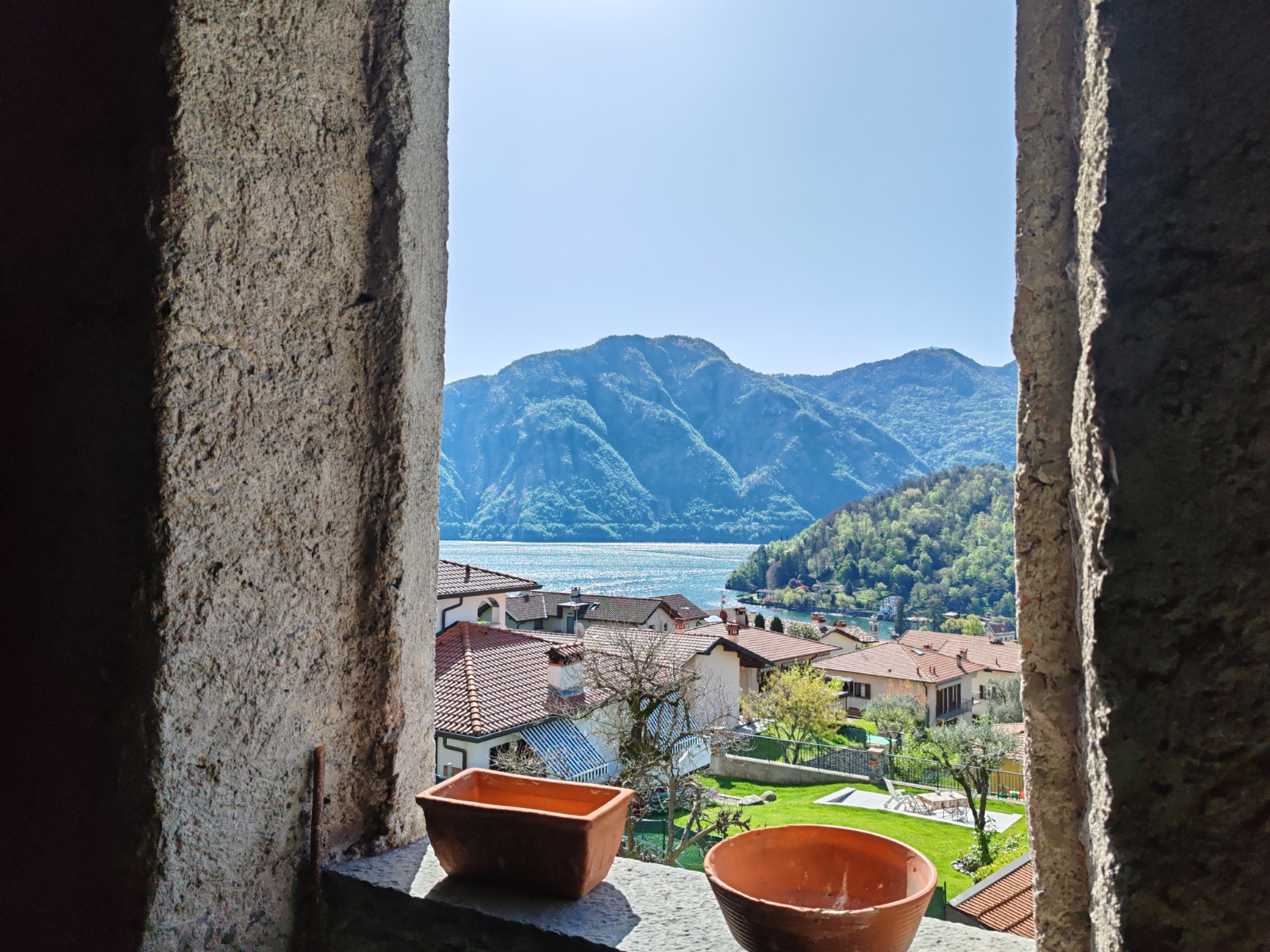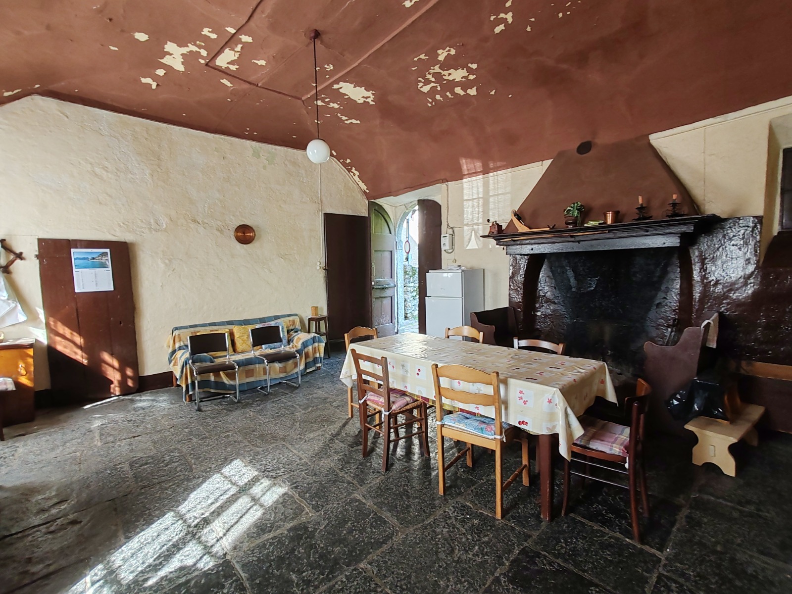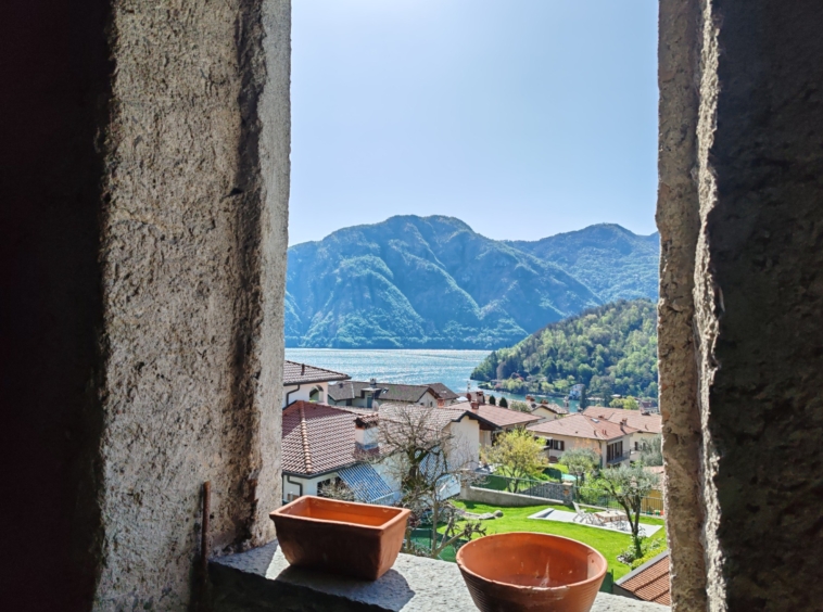 Al piano terra, troviamo due ampie stanze: una attualmente adibita a cucina con un caratteristico camino in stile e l’altra con finestre che regalano una vista mozzafiato sul lago.