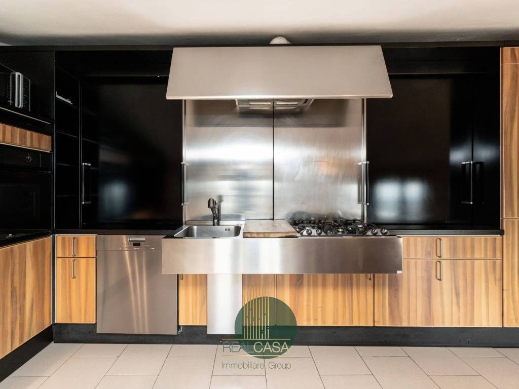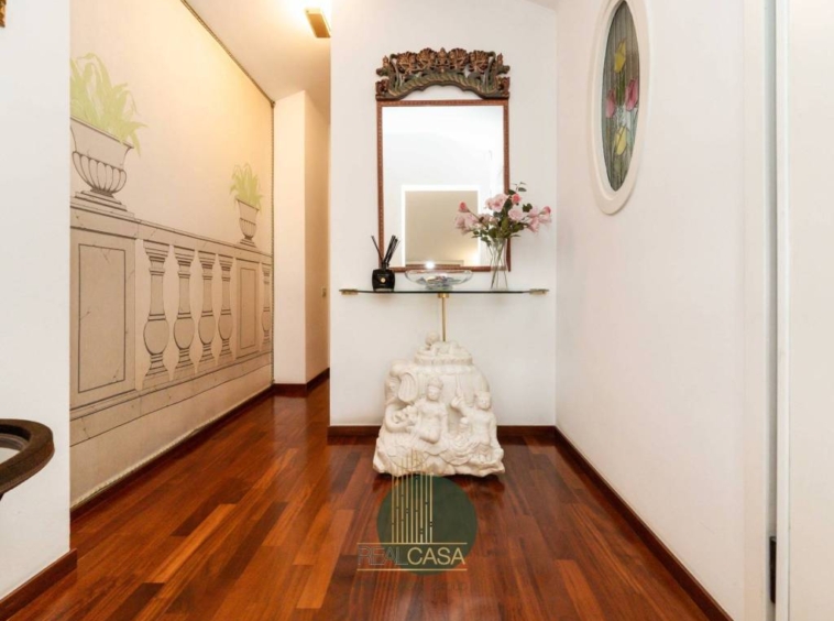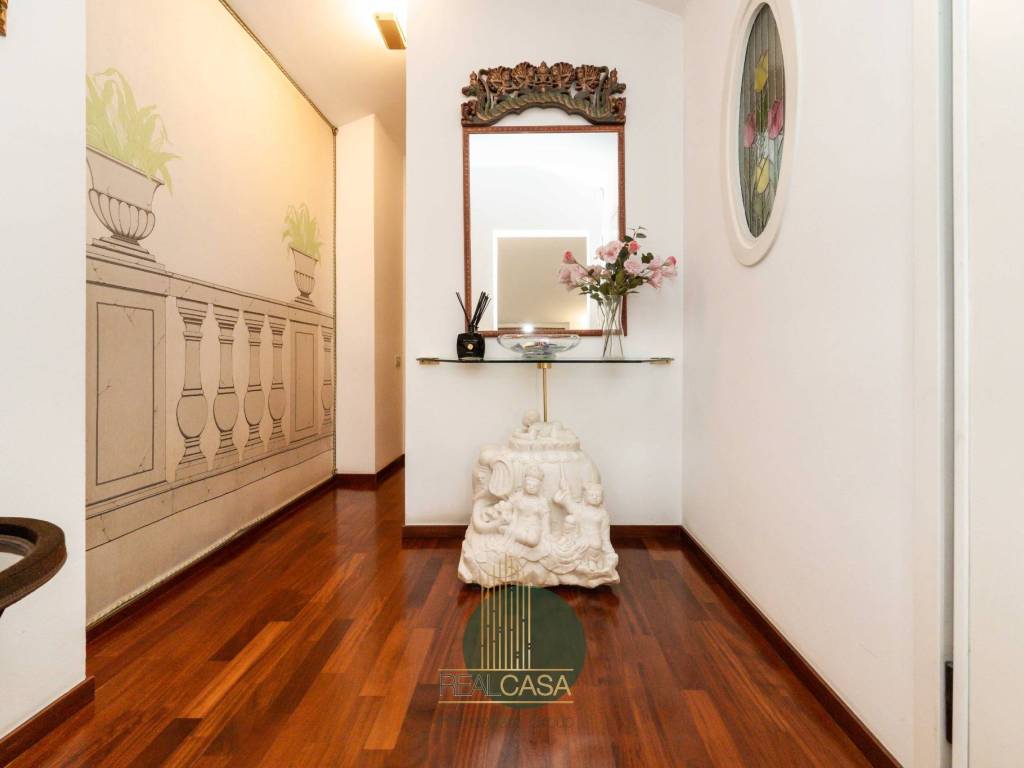 L’appartamento si svilluppa su un unico livello abitativo al quale si accede tramite una comoda scalinata, il tutto così composto: ampio ingresso che conduce a un soggiorno ben progettato con zona relax e una sala da pranzo direttamente collegata a un’ampia cucina con arredi su misura e fuzionali; da tutta la zona giorno si accede al terrazzo di 100mq con vista sul parco e piscina condominiale.