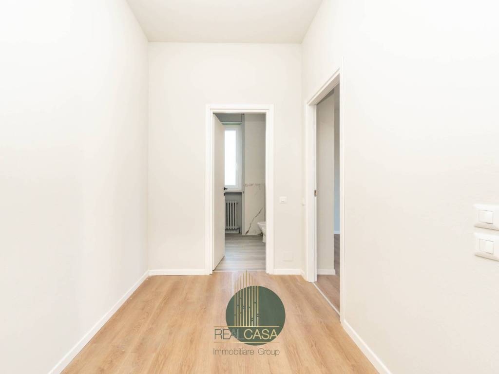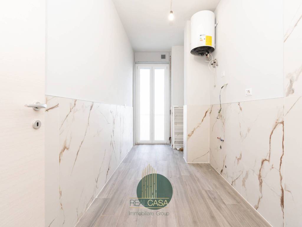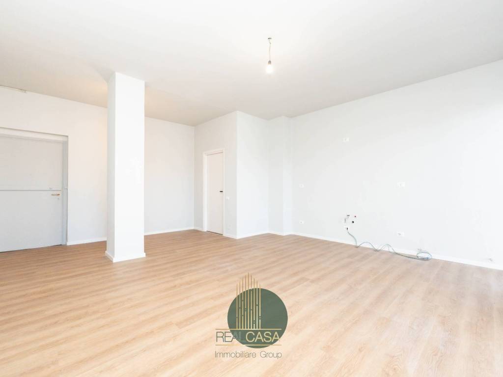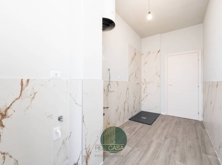 La soluzione è così composta: si accede direttamente sull’ampio e luminosissimo soggiorno, che gode di grandi porte-finestre, di una parete attrezzata per la cucina a vista e di un comodo e funzionale ripostiglio;