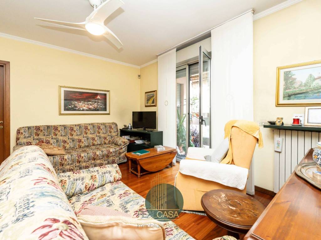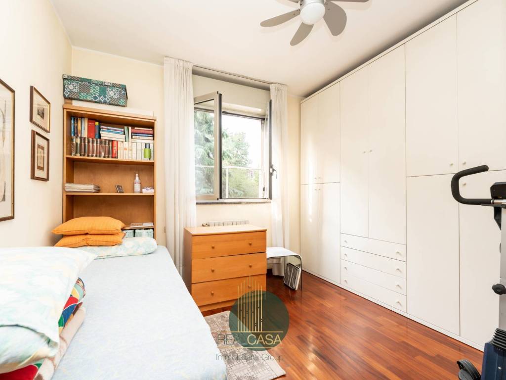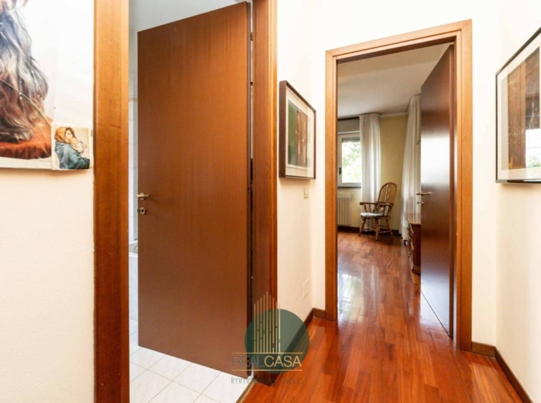 L’appartamento si presenta in buone condizioni ed è composto da un luminoso soggiorno con accesso a un ampio balcone affacciato sul giardino interno, una cucina abitabile con secondo balcone, un disimpegno che conduce a due camere da letto e due bagni, di cui uno finestrato.