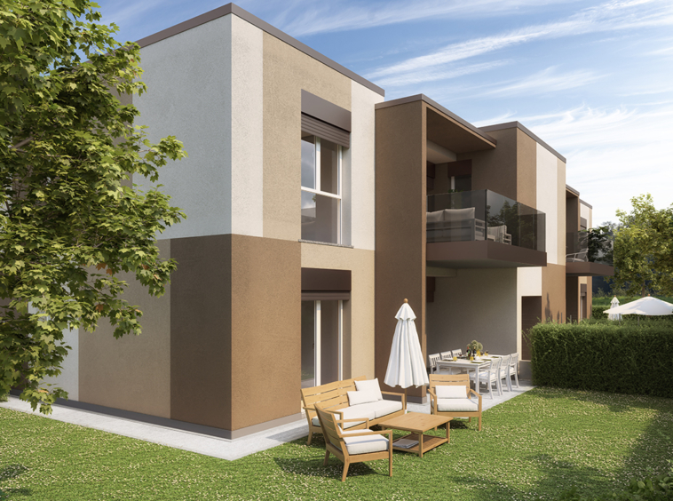 REALCASA IMMOBILIARE PROPONE IN VENDITA: Trilocale con terrazzo in complesso di nuova realizzazione, diverse unità abitative con tipologie di quadrilocali, trilocali e bilocali completi di giardini privati e terrazzi.
