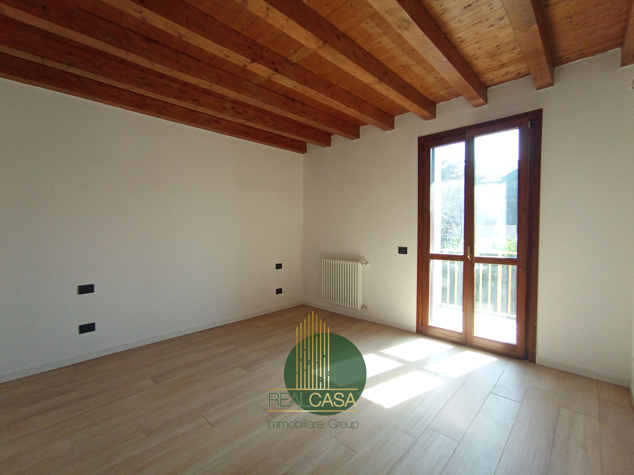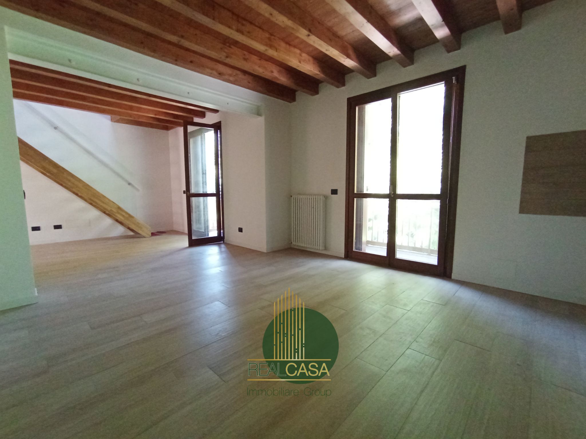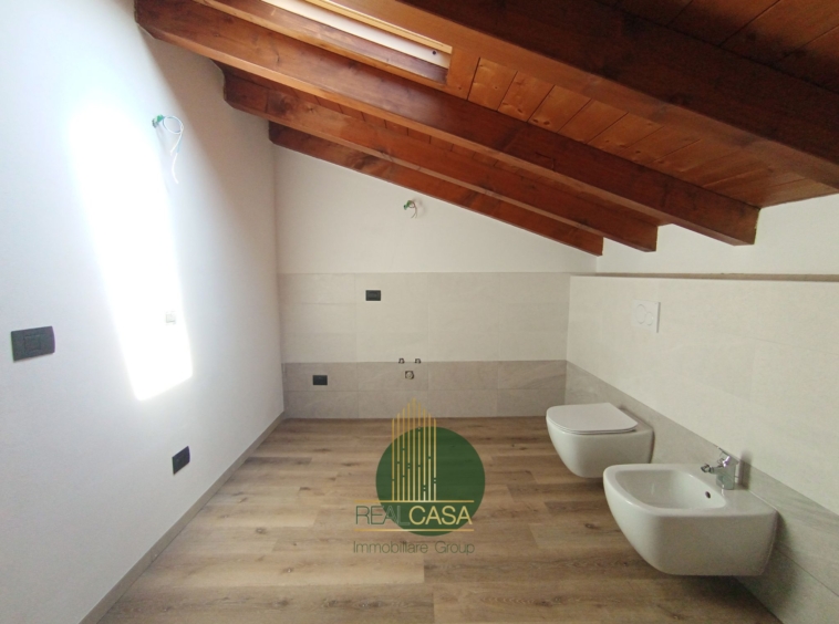 L’appartamento si apre su una zona giorno ampia e accogliente, con un soggiorno spazioso e con predisposizione della cucina. I materiali vedono un portoncino blindato d’ingresso finemente rifinito, un gres comodo come pavimento che crea armonia con le travi a vista.