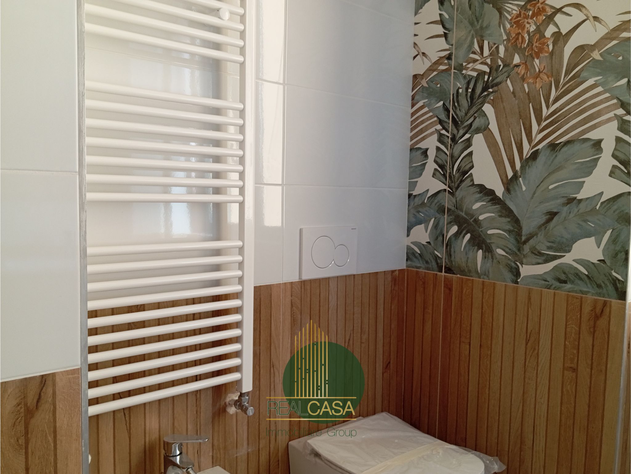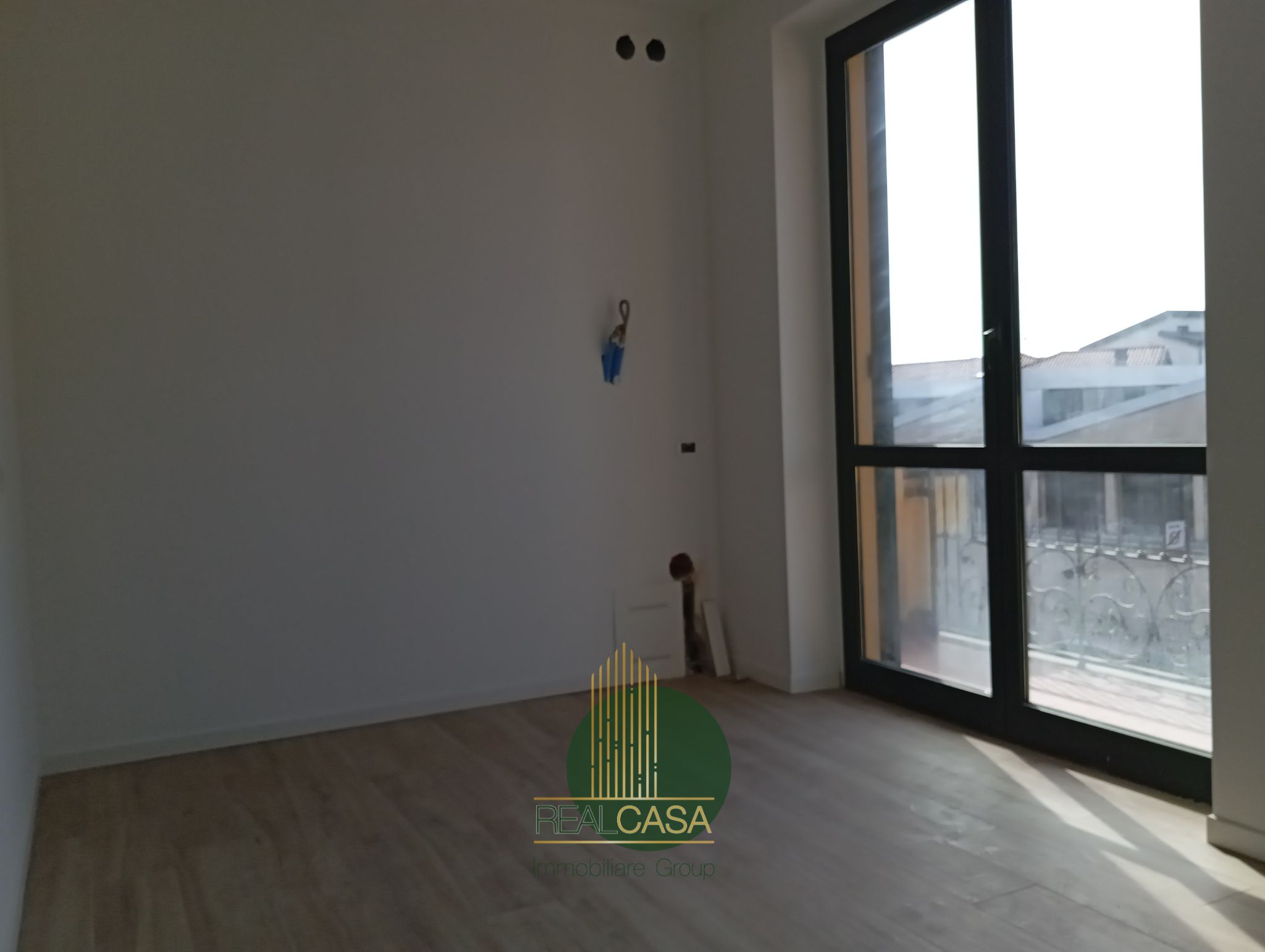 bianchi con doppio vetro di grande dimensione a garantire una importante luminosità interna, pavimentazione ricercata in gres porcellanato effetto parquet in tutto l’appartamento.