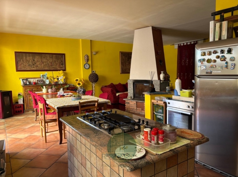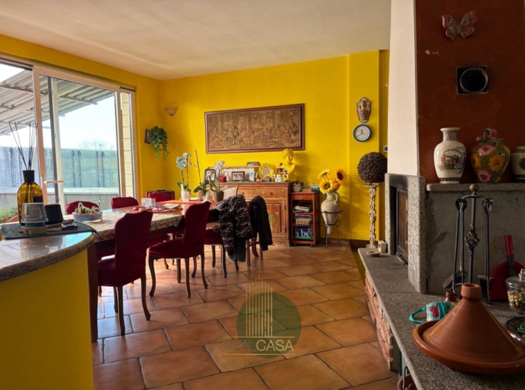 Piano Primo Rialzato: Accogliente appartamento di 133 mq, dotato di riscaldamento autonomo e un suggestivo camino a legna con doppia faccia ventilato. Composto da: