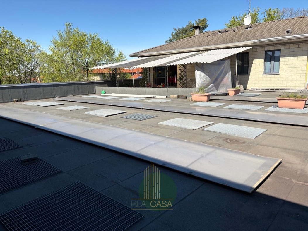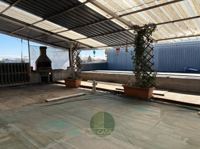 Soggiorno luminoso con cucina abitabile e accesso diretto a un terrazzo di 60 mq, perfetto per cene all’aperto e momenti di relax.